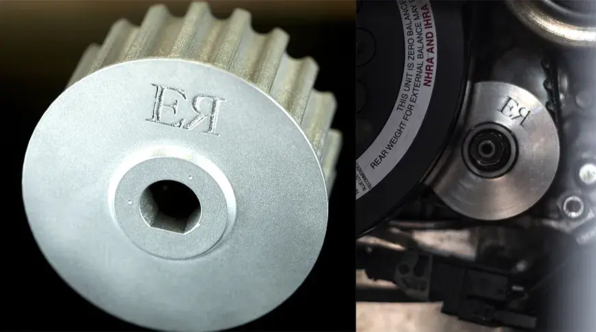 2014 年 6 月 27 日、English Racing チームは新デザインの油圧ポンププーリーを Pikes Peak ハーフマイル最速イベントでのテストに使用し、時速 184.9 マイルを達成してセダンクラスで 1 位に輝きました。「車は期待通り、素晴らしい走りをしました」と English Racing の技術者兼チューナーである Zach Morgan 氏は語っています。「ダイナモメーターでの動作では不良が見られなかったので、上位に入れる車両を作ったつもりではいましたが、まさか優勝できるとは思っていませんでした。チームは大興奮でしたよ!」