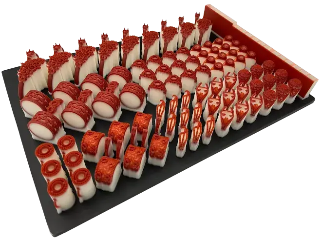 MJP 300W の導入に伴い、3D Systems は QHD と UHD という 2 つの新しいプリントモードを発表しました。QHD モードでは、前世代のワックス 3D プリンタと比較して、すべての軸で 50% 以上の解像度の向上 (X 軸で 2,000 dpi、Y 軸で 1,800 dpi、Z 軸で 2,900 dpi) と、9.5 μm のレイヤ厚さが可能になります。これにより、高品質の表面仕上げが可能になり、デザインの製造に必要な仕上げ工程を減らすことができます。QHD ではまた、研磨が実用的に困難または不可能であるような複雑なデザインのプリントも可能です。UHD モードは、今年初めに発表された ProJet® MJP 2500W Plus の XHD に比べて 2 倍のプリント速度を実現します。UHD ではスループットが大幅に向上し、仕上げと研磨に必要な労力を削減できます。4 つのプリントモード (QHD、UHD、XHD、ZHD) が利用できるため、あらゆるデザインスタイルで要求される速度、形状の複雑さ、表面品質のレベルに応じて、昼夜両方のシフトのビルド計画の柔軟性を向上させることができます。