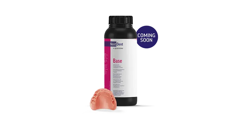 - NextDent Base は、あらゆるタイプの脱着可能な義歯ベースのプリントに適しています。この材料は、弊社の 3D プリント用義歯ベース材料の第 3 世代であり、優れた機械的特性を備えています。この材料の前世代に対するフィードバックにより、高い耐破損性や堅固なプリント適性などについて明確な方向性が研究開発チームに示されました。NextDent Base は、従来の義歯ベースの材料にまさに匹敵するものであり、耐衝撃性に優れ、長持ちする義歯を患者に提供します。NextDent Base は、さまざまな美観に合わせた 4 色で提供され、今年後半に一部の市場でご注文いただけるようになる予定です。