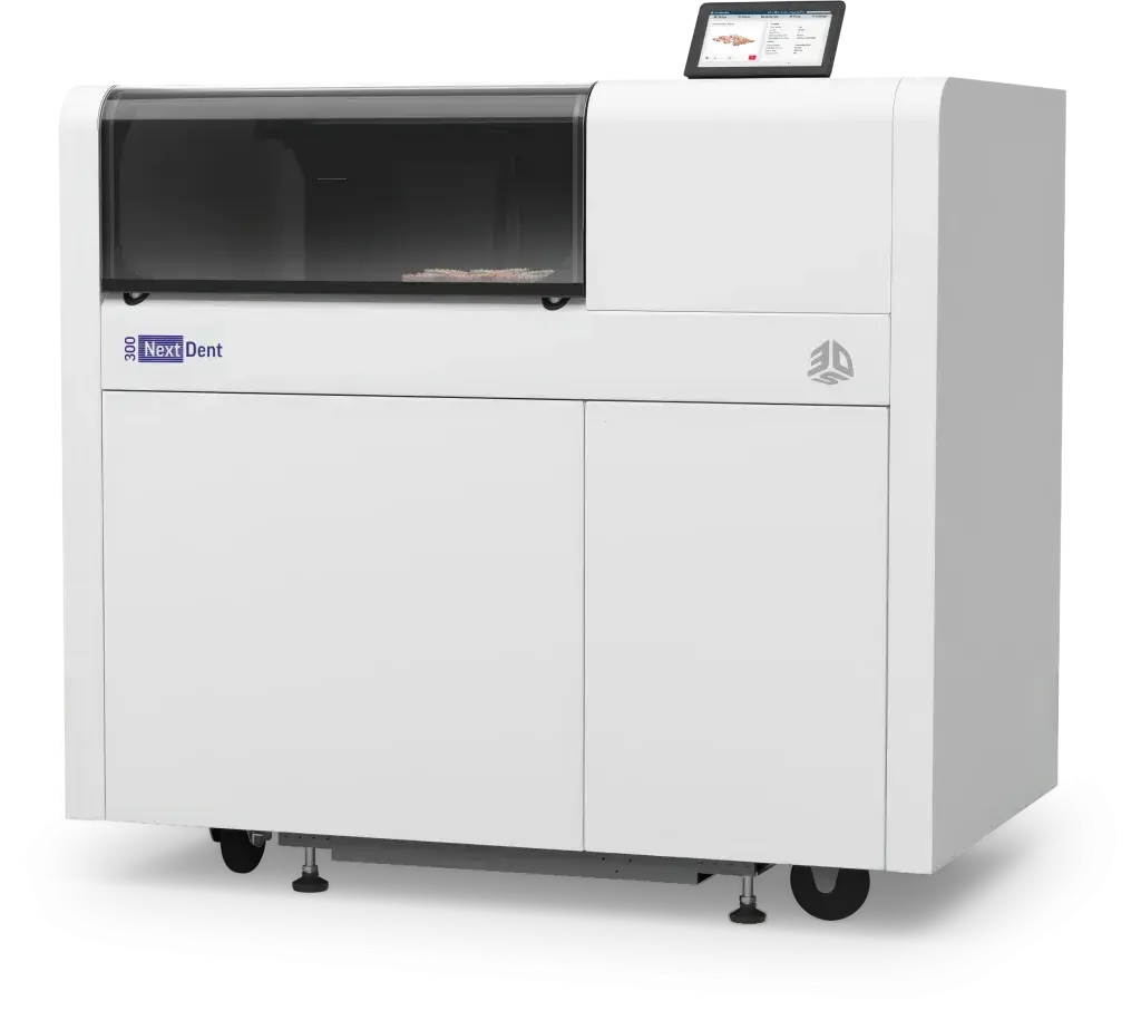 NextDent 300 は、大規模な歯科技工所が義歯を迅速に製造できるようにする、3D Systems の FDA 承認済み完全ワークフローソリューションの一部です。